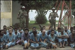 MOZAMBIQUE. Inhambane region. 1983. A group of captured "bandidos...