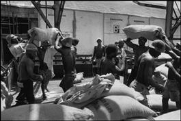 MOZAMBIQUE. Port of Maputo. Unloading of sweetcorn. 1984.