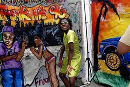 USA. Atlanta, Georgia. 1995. Girl posing in front of Graffiti....