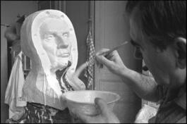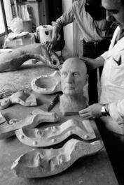 Réalisation du buste en terre de François MITTERRAND, par le...