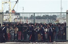Italia, Brindisi: Albanian refugees at the port. (c) Ferdinando...