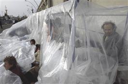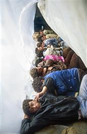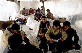 ITALY, Brindisi: albanians refugees sleeping at the port.