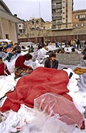ITALY, Brindisi:albanian refugees staring at the shopwindows....