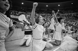 USA. ARIZONA. TEMPE. ASU cheerleaders at a bsketball game with...