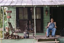 USA. St. Augustine, Texas. 1985. D.B. Chambers on porch with...