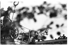 GERMANY, BERLIN, 1961. East German soldier watches from scaffolding...