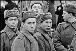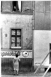 A Russian soldier (part of the Occupation forces in Berlin) window...