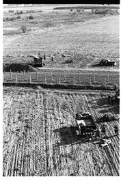 GERMANY, WEST BERLIN,1961. Farmers work on west side of barbed...