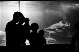 USA. Coney Island. 1987. The aquarium. Watching a beluga.