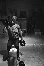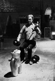 Andy WARHOL, exercising seated on the toilet, in the Silver Factory,...