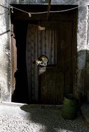 PORTUGAL. Alcobaca. 1956. Doorway outside the sacristy of a former...