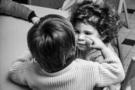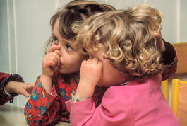 FRANCE. Paris 75010. Friends at a private (Catholic) nursery...