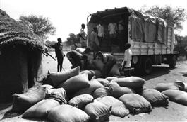 SOUDAN. Ville de Lakichoko. Débarquement d'aide alimentaire pour...