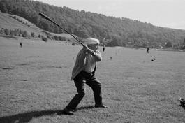 GB. England. West Yorkshire. An old man plays billets. 1975.