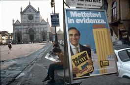 Italy, Florence: shopwindow with Springsteen and Florence maps....