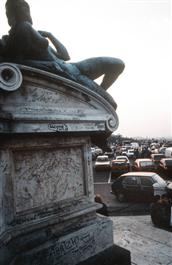Italy, Florence: the reflection of a staue in Piazzale Michelangelo....