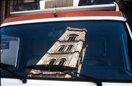 Italy, Florence: the reflection on a luxury car of the Duomo....