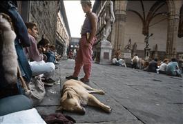 Italy, Florence: homeless washing clothes near St. Maria Novella....