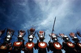 NEW GUINEA. Goroka. 1960. Tribal warriors rest during the Goroka...