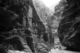Entering to Petra, the ancient rock-cut city in the south-western...