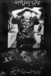 IRAN. Tehran. November 1979. A poster shows US marines prisoners...