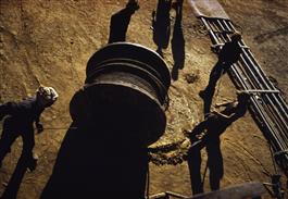 ALGERIA. The Sahara. Two men mixing sand and water to make bricks....