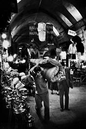 TURKEY. 1965. Man with a mattress inthe Bazaar.