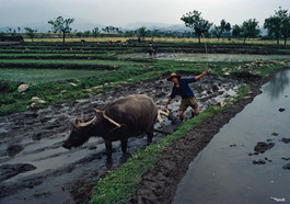 Near Loshan. Rice paddies with a pedan driven irrigation system....