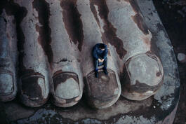 CHINA. Sichuan province. Loshan. The foot of a Buddhist statue,...