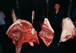 A peasant cooking with gas made from the excrement of pigs (Bio...