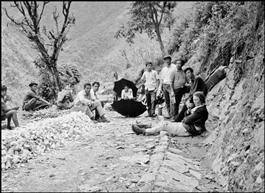 Sikkim. The photographer Marilyn SILVERSTONE resting with a group...