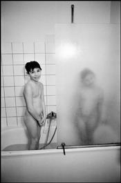 Bourgogne. Fort Jaquet. Max and Anna in the shower.