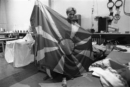Skopje. Liljana STOJANOVA, owner of a flag-factory displays one...