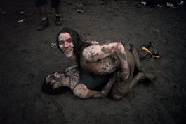 USA. New York. Saugerties. 1994. A man hovers over his campanion...