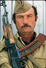 TAJIKISTAN. 1993. Progovernment militiaman with a Kalashnikof....