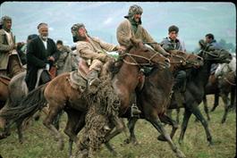 TAJIKISTAN. Kholkozabad. 1993. Traditional game of "bozkochi",...