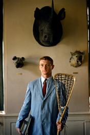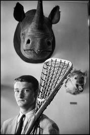 USA. New Hampshire. 1956. Student with a lacrosse stick.