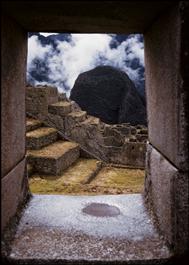 PERU. Machu Picchu. May 1954. Intihuatana (stone used by Incas...