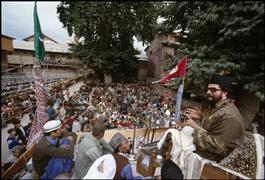 INDIA. Kashmir. Srinagar. There are still police in Srinagar, the capital of the mountainous northern Indian state of Jammu and Kashmir on the border with Pakistan. The city which is overwhelmingly Muslim (population 550,000) was a hotbed of turmoil in the years of Indira Gandhi. Here resides Mirwaiz Maulvi FAROOQ (47), the leader of the Muslim oriented National Conference Party and former enemy of Indira Gandhi, when he won 46 of the 76 state assembly seats and while her pary, Congress I, won only 26 in the fiercely contested local elections. Maulvi Farooq is considered to be an Islamic zealot whose followers are fervent admirers of Pakistan. The Gandhi government has long feared secessionist tendencies in the strategic state, where Muslims outnumber Hindus 3.9 million to 1.8 million in a country with 746 million inhabitants.