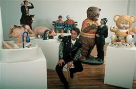 USA, New York. JEFF KOONS, with collection of his sculptures...