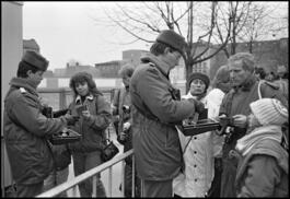 GERMANY. West Berlin. Brandeburg gate. Passport control in the...