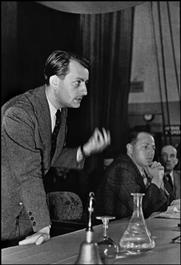 FRANCE. Palais de la Mutualite. French writer Andre MALRAUX speaking...