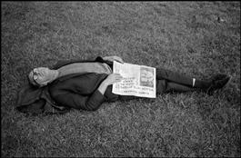 UK. England. London. Man with a newspaper in Hyde Park. 1974