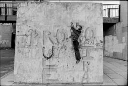 NORTHERN IRELAND. West Belfast, boy jumping from a wall. 1979....
