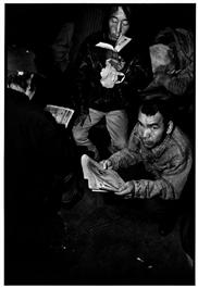 JAPAN. Tokyo. Sanya. 2000. Homeless man waits in line for his...