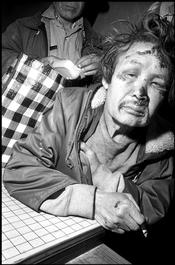 JAPAN. Sanya. 2000. Homeless man smoking.