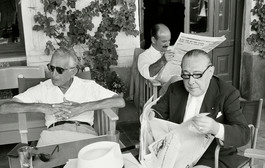 ITALY. NAPLES. Some gentlemen discussing on the terrace of a...