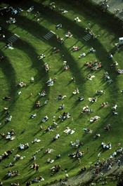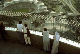 1989. Arab tourists look down onto the Olympic Park and Stadium...