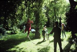 1989. Children play in the Old Northern Cemetery (Nordfriedhof)....
