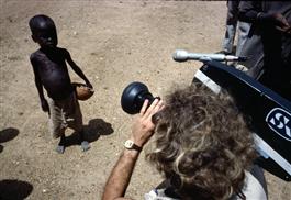 Siroti. 1980. Peering into back of Red Cross Land Rover.